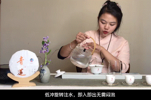 (注:低冲旋转注水可以令茶叶慢慢的被热水浸润,给茶叶的内含物质一个析出的时间段。)