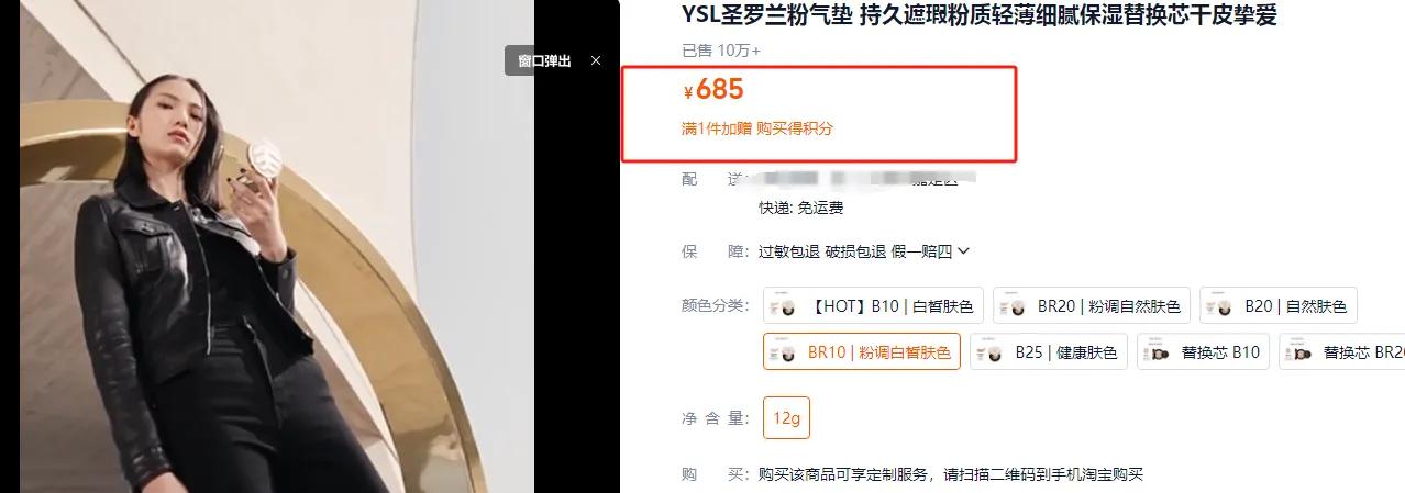 现在直接给到宠粉价,12g粉气垫 + 90ml自由之水 =599元,相当于3折不到!