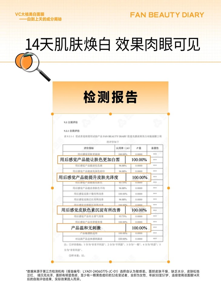 使用14天后,100%认同肤色更白皙、更有光泽!