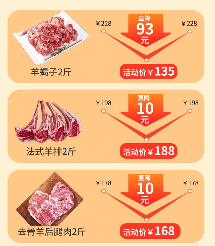 羊蝎子+法式羊排+去骨羊后腿肉组合装