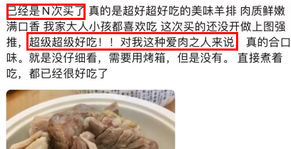 尤其一位选品组员,老人孩子都特爱吃羊肉,直接怒囤了3份组合装,还是原价购买。用他的话说:家人吃的开心就行!