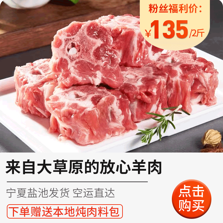 这满满一大袋里有2斤,空运新鲜包邮到家。关键是今天下单,就送本地炖肉料包。选羊蝎子+战斧羊排+去骨后腿肉6斤组合更优惠。让您足不出户吃到宁夏美味~