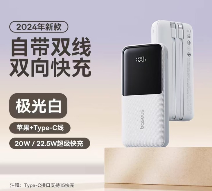 自带快充线,可上飞机,苹果手机可充满3次以上!