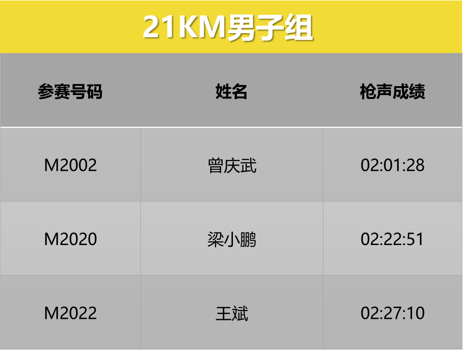 经过激烈角逐,曾庆武以02:01:28的成绩夺得男子组冠军,选手梁小鹏和王斌分别获得男子亚军和季军。