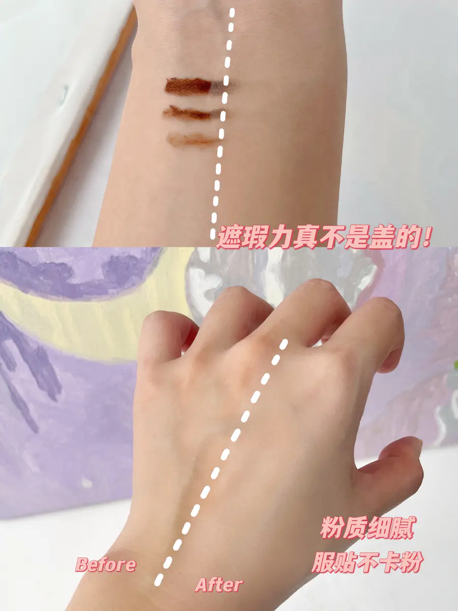 瑕疵重的地方,少量多次叠加,也不会厚重卡粉,妆效💯分!