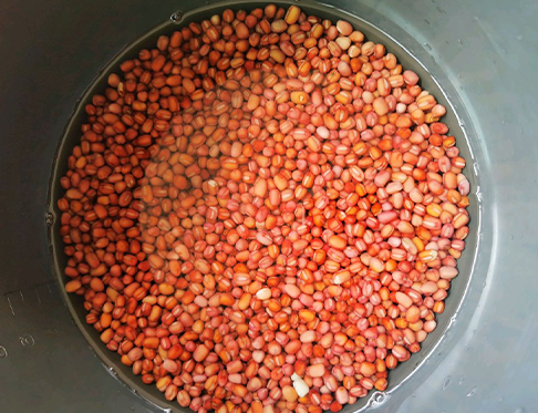 将红小豆洗净,用清水浸泡24小时(放入冰箱冷藏),放入电压锅调到炖牛筋档,压制30分钟,红小豆沥干水份放入小钢盆中散掉水汽;