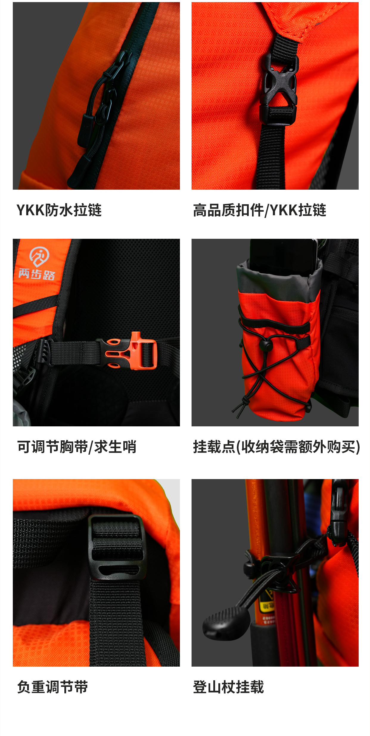 ✔️超多挂载点——登山杖、冰镐、三脚架,外挂随心配!