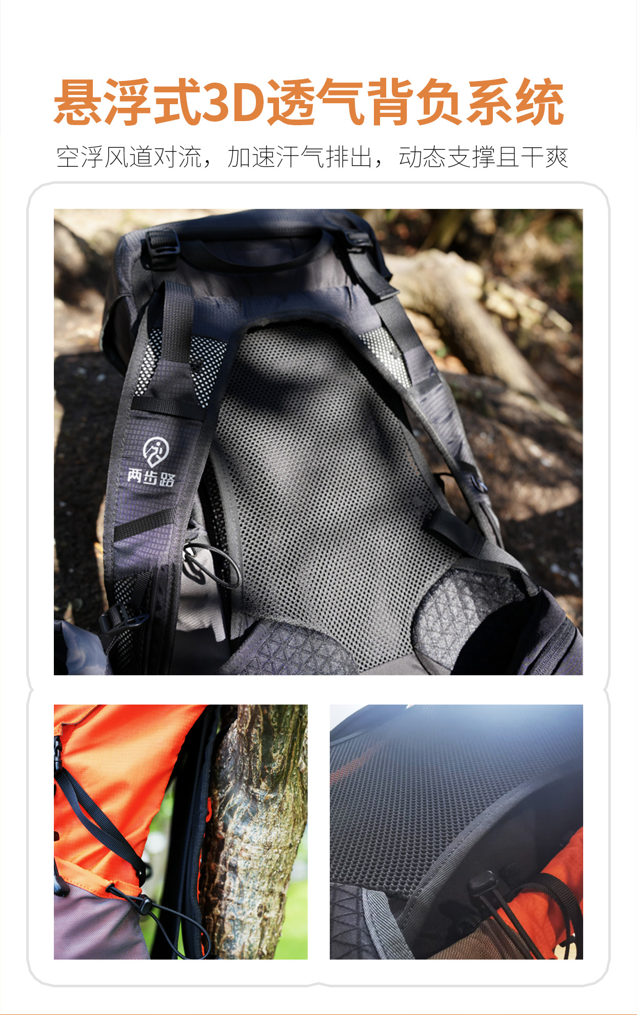 特别是夏天在徒步途中经常流汗,背部也能保持干爽透气,不易闷热!
