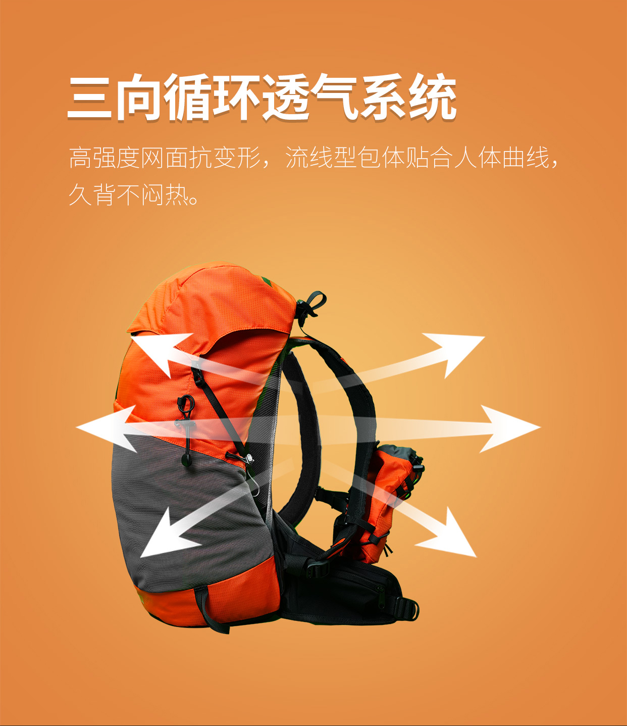 🔥与其他普通背包不同,云界这个用的是独特的悬浮式3D背负系统,让你的后背和背包之间,像隔着一阵风一样!