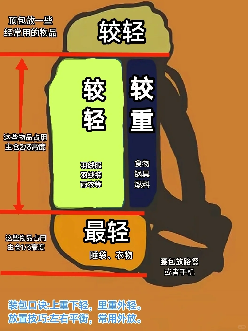 💁顺便科普下户外背包的装载技巧,让徒步之路轻松又高效!