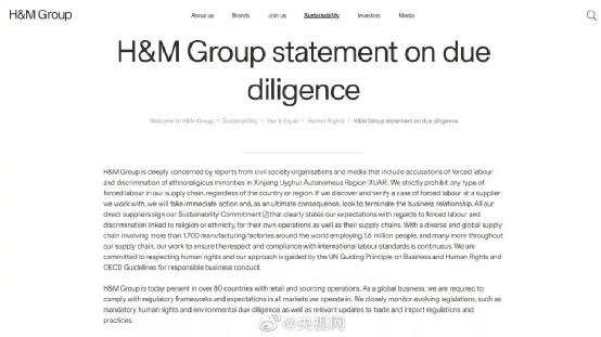 昨天下午,瑞典服装品牌H&M官网上的一份声明,开始在微博上广泛传播。
