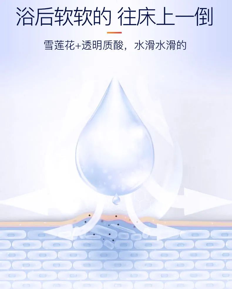 像冬季这么干燥的季节,用来沐浴简直是锦上添花。蕴含的雪莲花菁萃温和滋润干皮,透明质酸号称天然保湿因子,补水保湿浴后不紧绷不假滑。足够满足你肌肤之选。