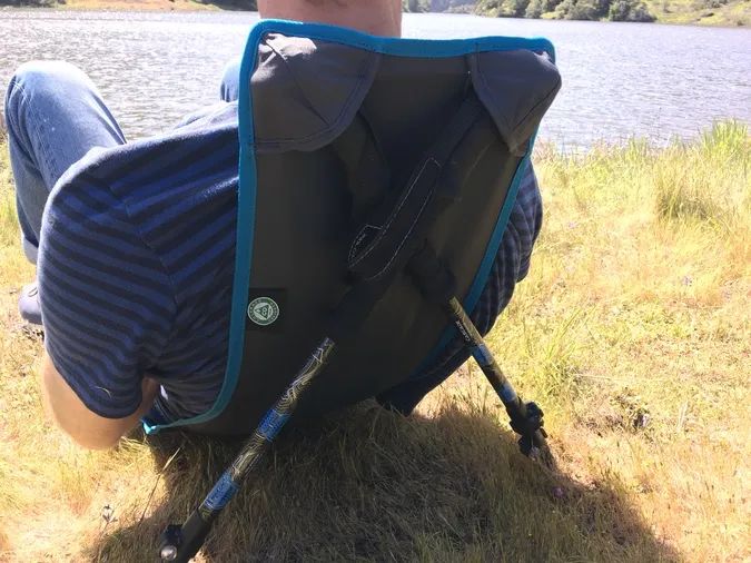:一种是利用登山杖+一块考度拉面料撑起来的“靠背”,可能要试几次才有稳定的角度;