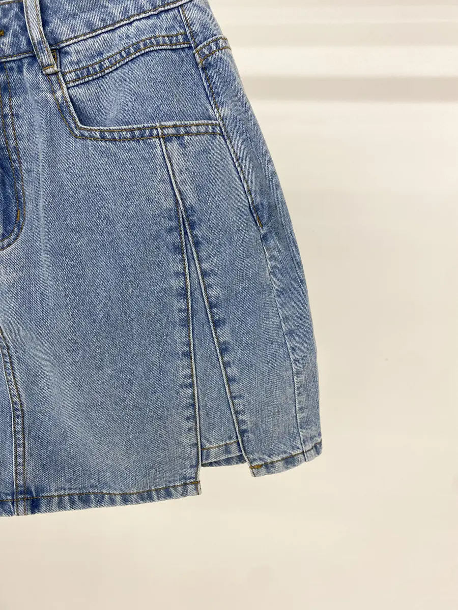 终于发现了一款好穿显身材的A字牛仔短裙了,不出错的A字版型,超级显腰线,同时打破传统单调的设计,采用了假高开叉细节点,让这条短裙的视觉又变得不一般,拉长腿部线条