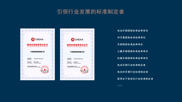 赛嘉作为电动牙刷、电动冲牙器行业标准制定者,累积研发专利350多项