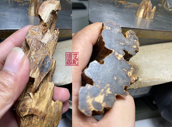 奇楠外表已经醇化的足够老了,刚开始没看好这块,一刀切开部分可以达到沉水了。香韵绝妙。