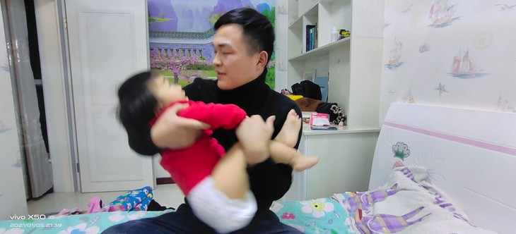 建议爸爸来陪玩,于是就出现了画面中爸爸抱着糖糖另类荡秋千的场景。