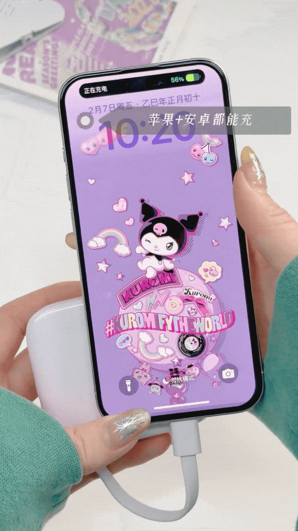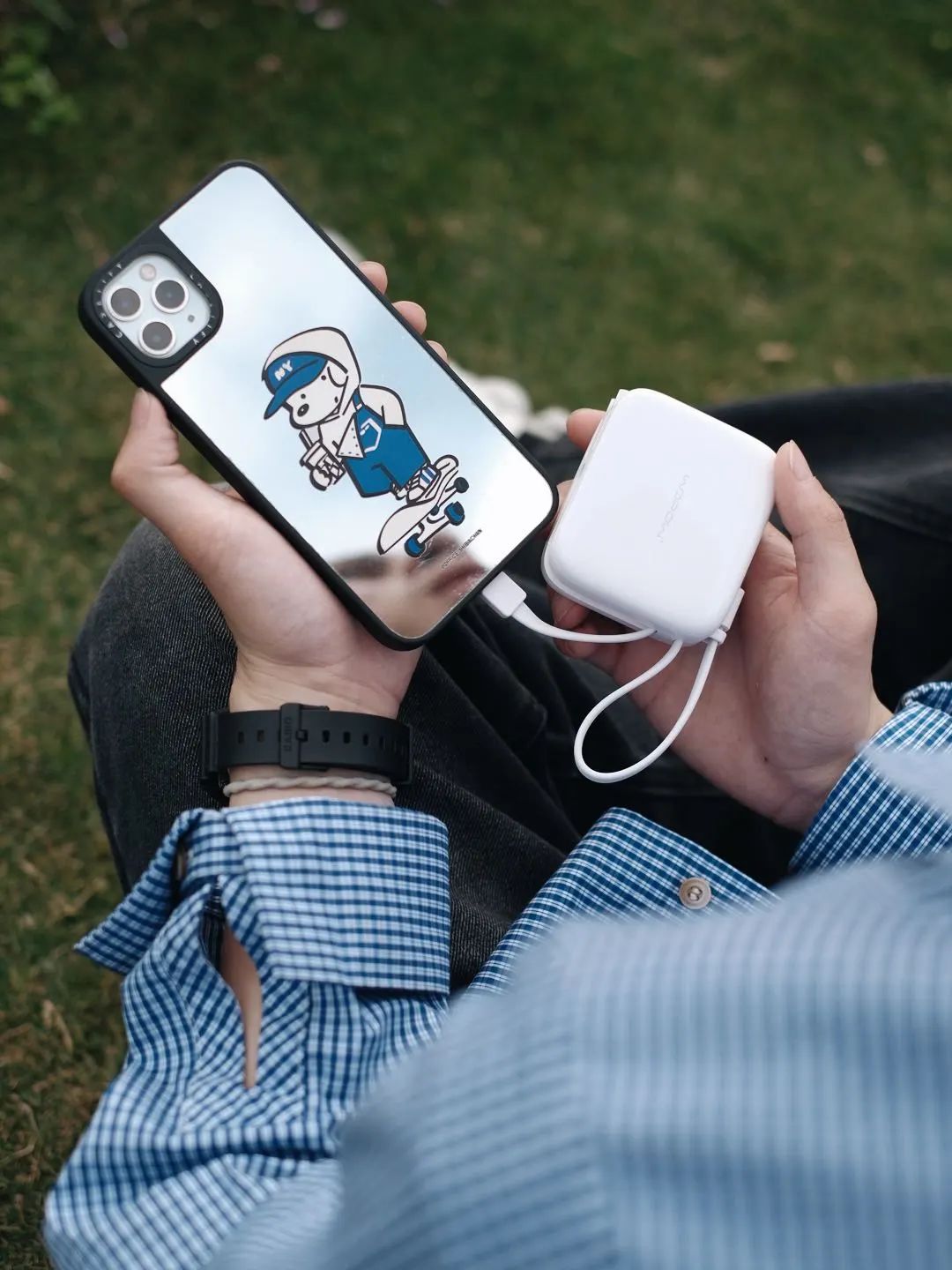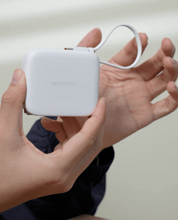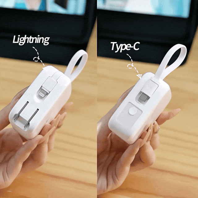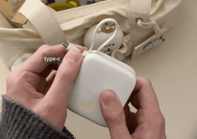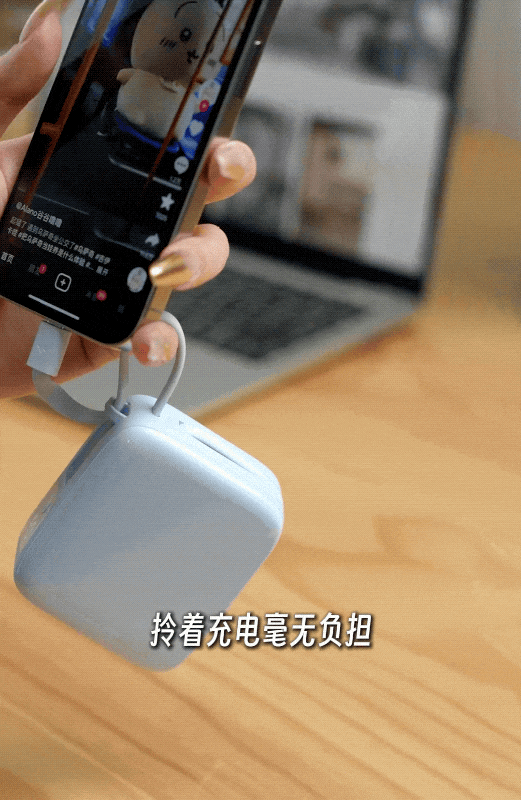 更重要的是出门再也不怕忘记带数据线了,自带2根收纳式快充线,需要用时,稍微用力一拉就弹出来,既是充电线也是挂绳。