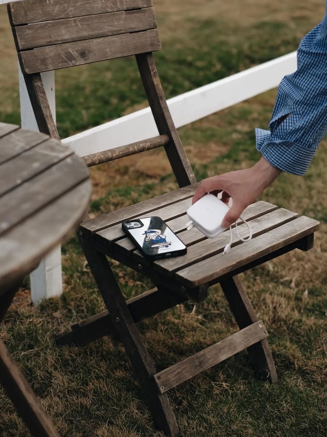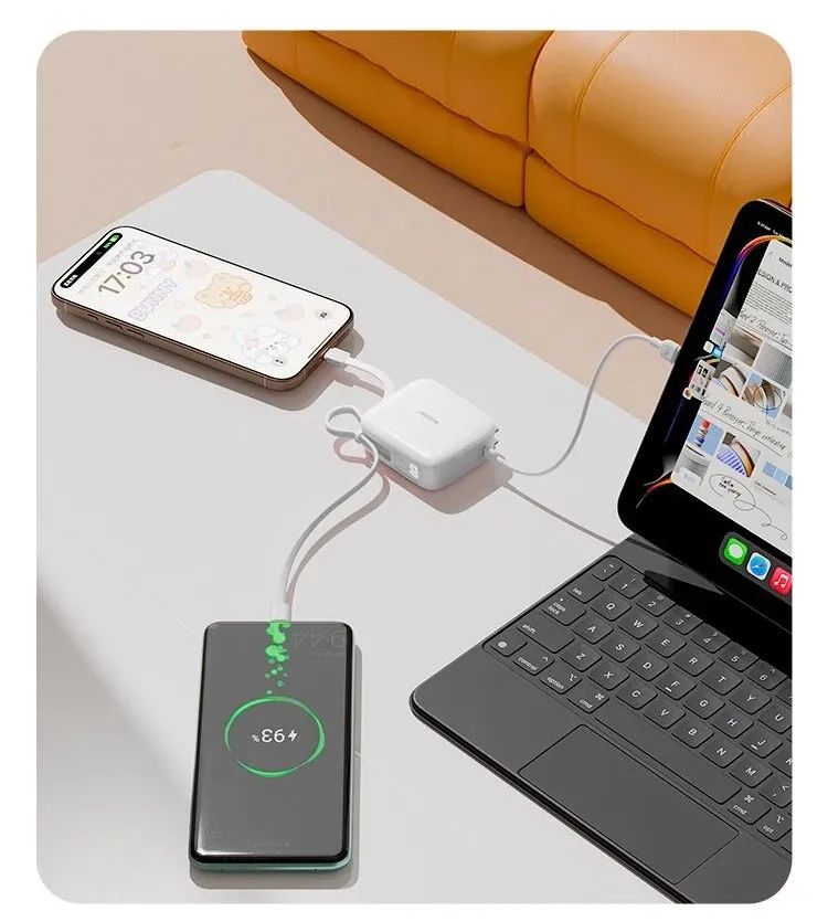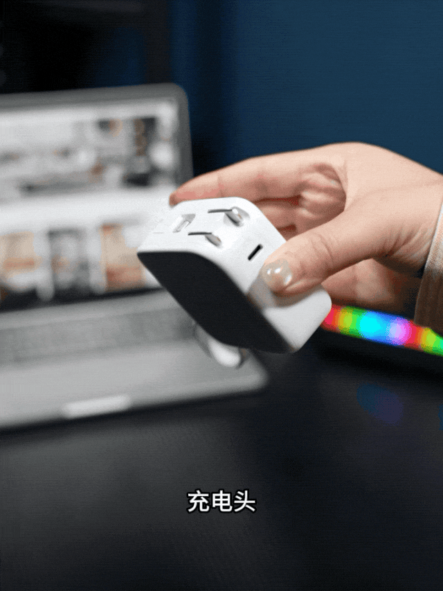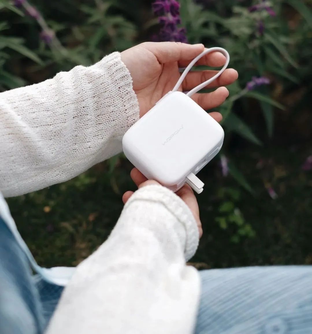 更重要的是出门再也不怕忘记带数据线了,自带2根收纳式快充线,需要用时,稍微用力一拉就弹出来,既是充电线也是挂绳。
