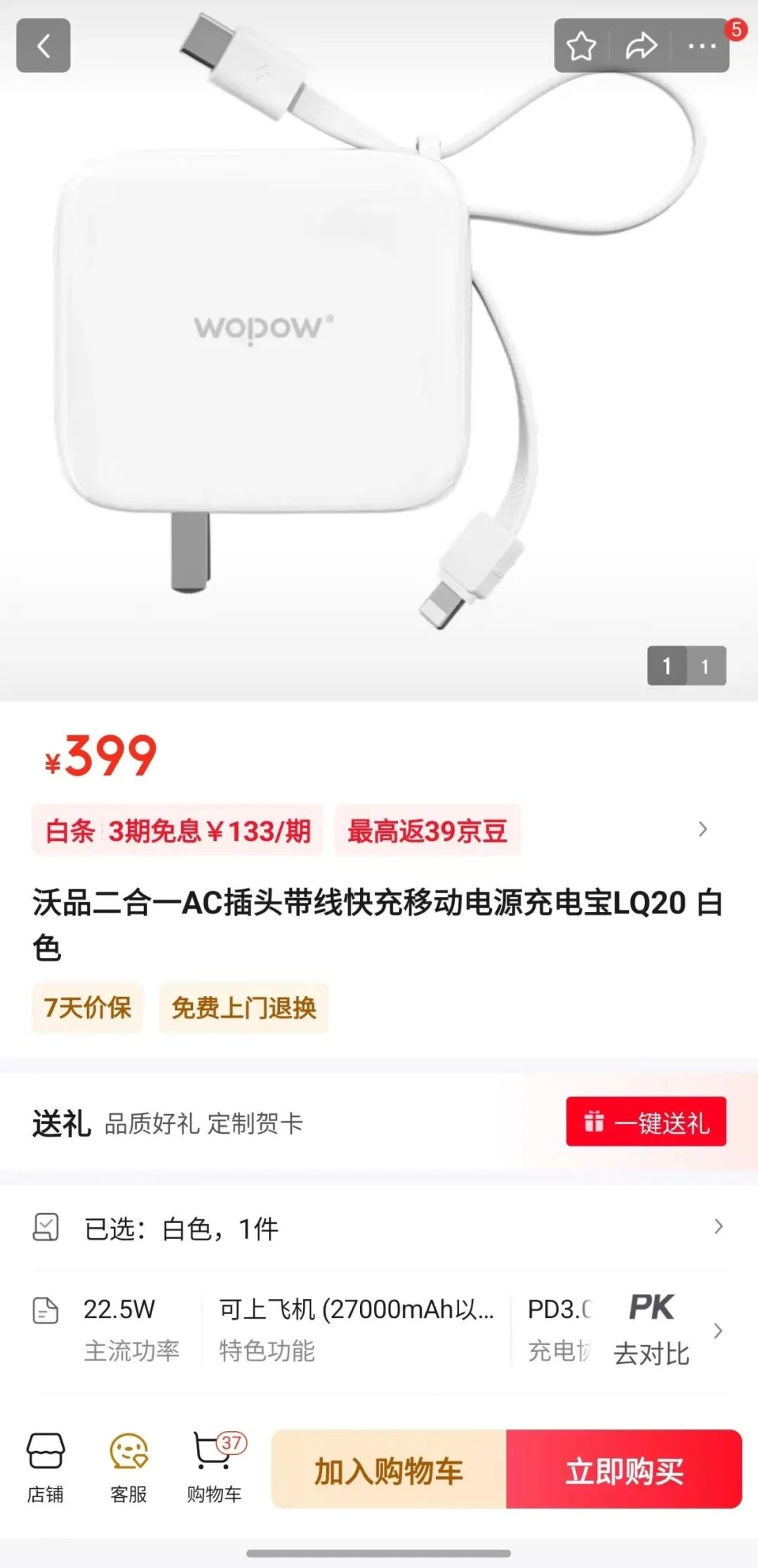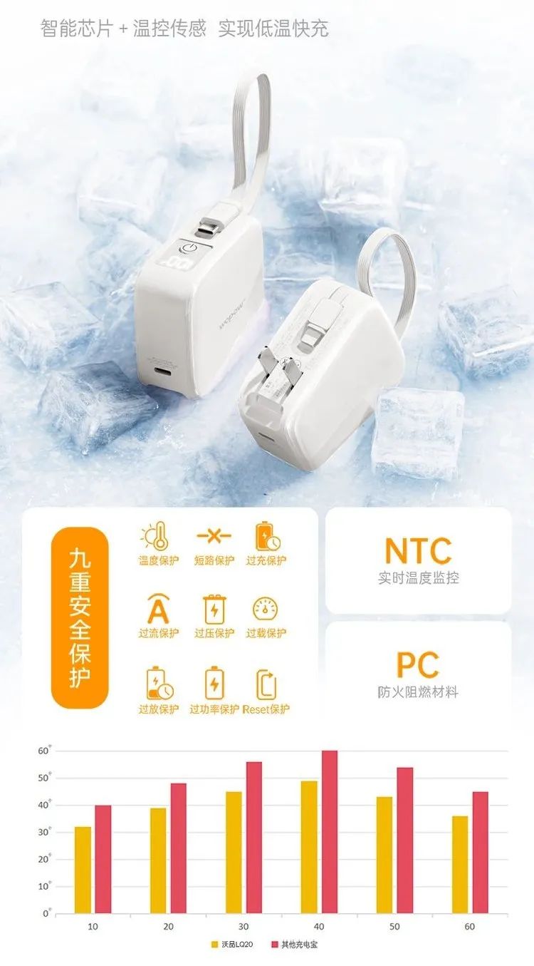 沃品这款三合一充电宝搭载的聚合物锂电芯,还内置了智能控制系统,防止过充、短路、过温、过压保护等;