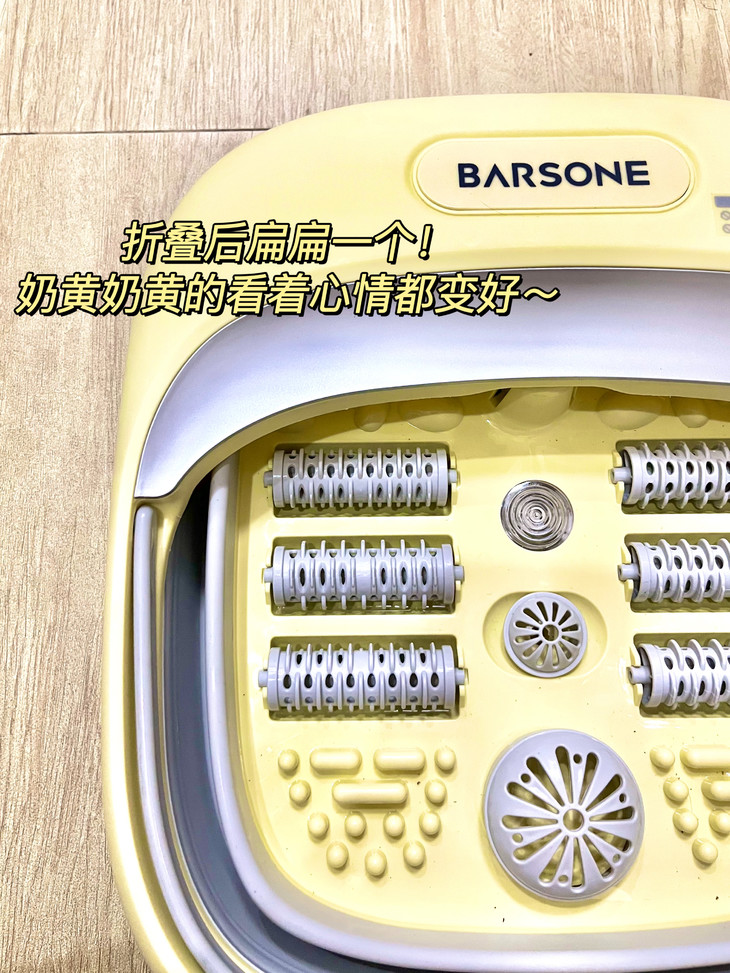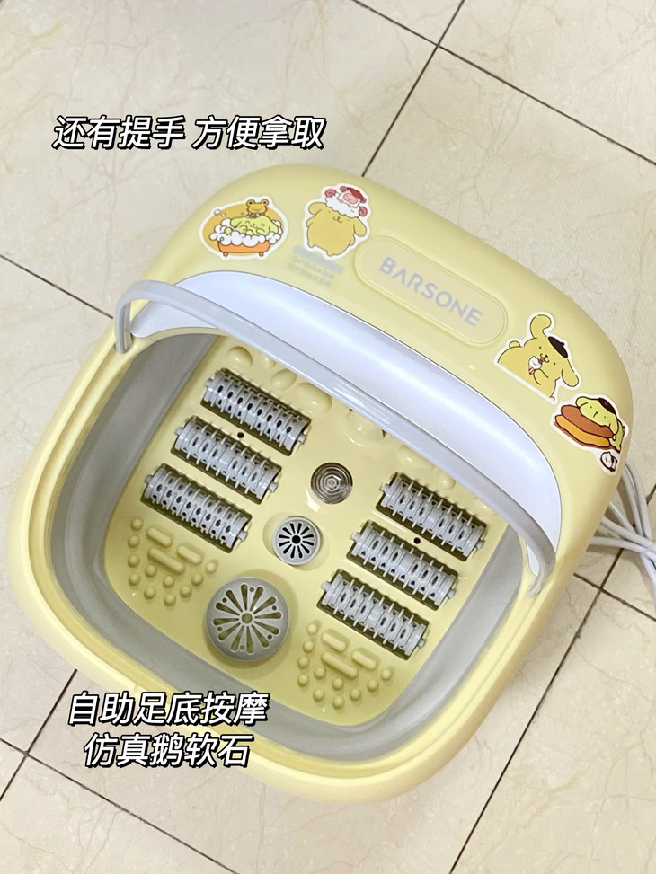 底部设计了六组按摩区,为双足“量身定做”,边泡脚边按摩。