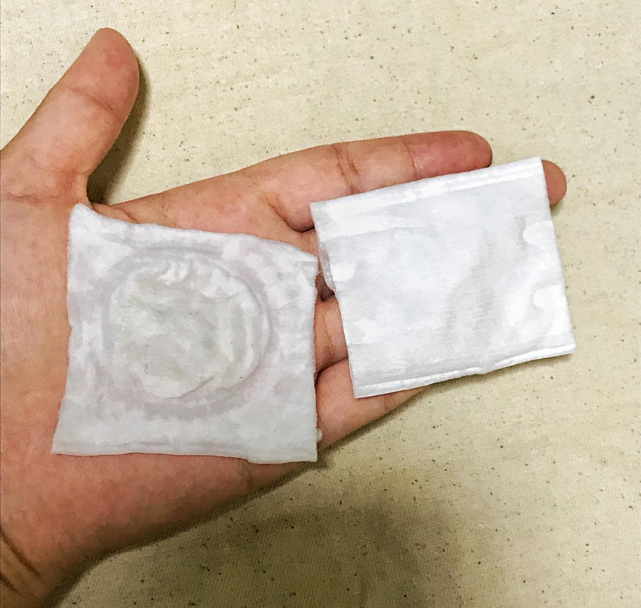 在化妆棉上倒入化妆水,我用的是薏仁水,切记不要用含酒精的化妆水哦,可以多倒一些。
