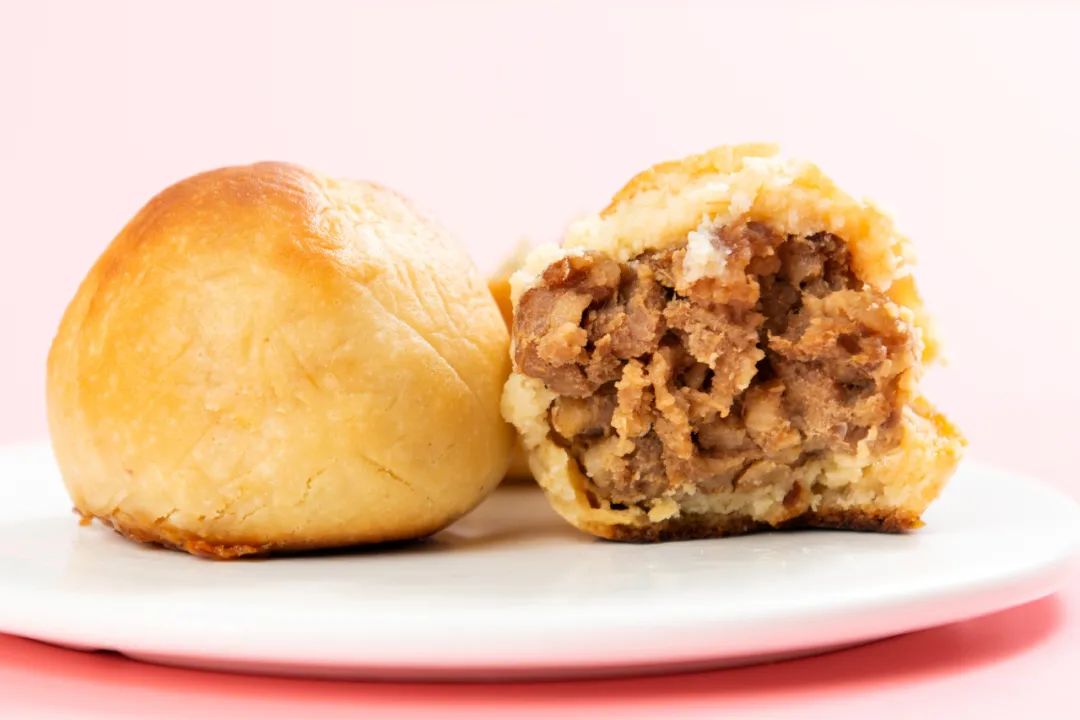 咬开软软糯糯、香酥的表皮,吃的时候一定要特别小心,太酥的外衣一不小心就会掉在地上。