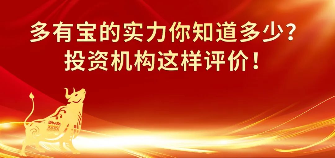 随着多有宝平台业务的不断深化,平台资质的不断升级,商业模式的不断完善,市场前景的不断发展,针对良好的发展趋势和市场影响力,现如今已经有多家投资机构对多有宝进行了调研评级。