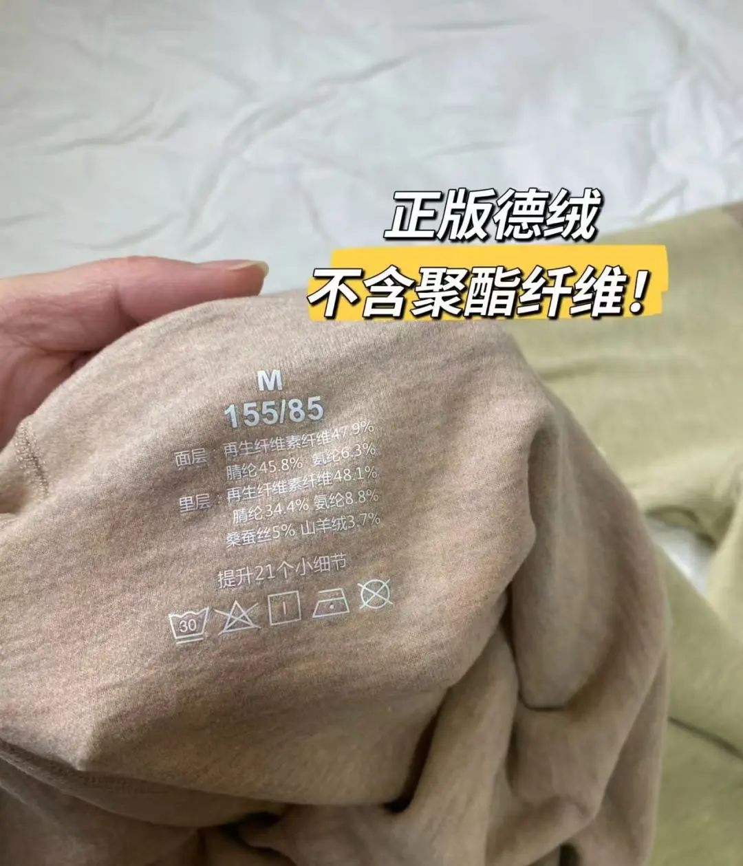 正版德绒面料里,真的不含聚酯纤维!