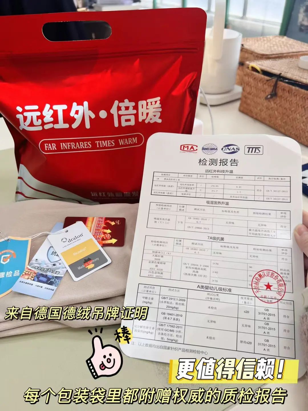 每个产品包装里都带一份质检报告!让家人们买的放心,穿的更安心!