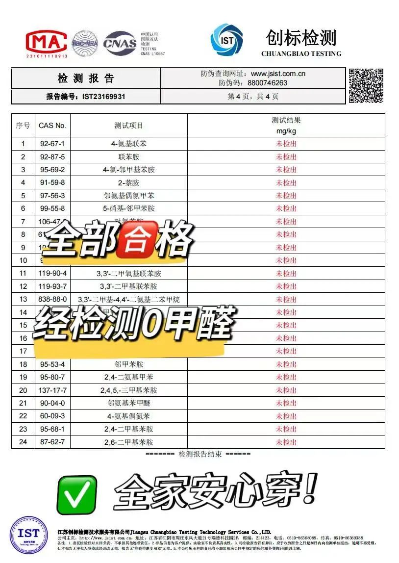 特意做了0甲醛安全测试!全家都能放心穿它!