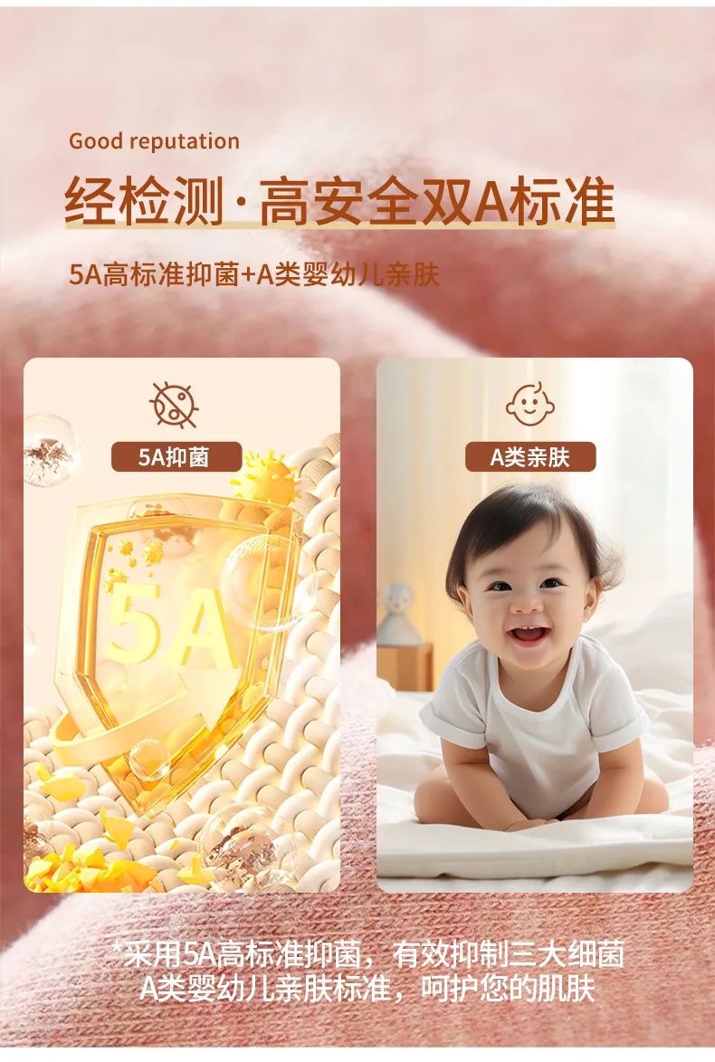 市面上大多都是B类标准或者3A级面料,咱们这款直接升级到5A婴儿级别yi菌面料