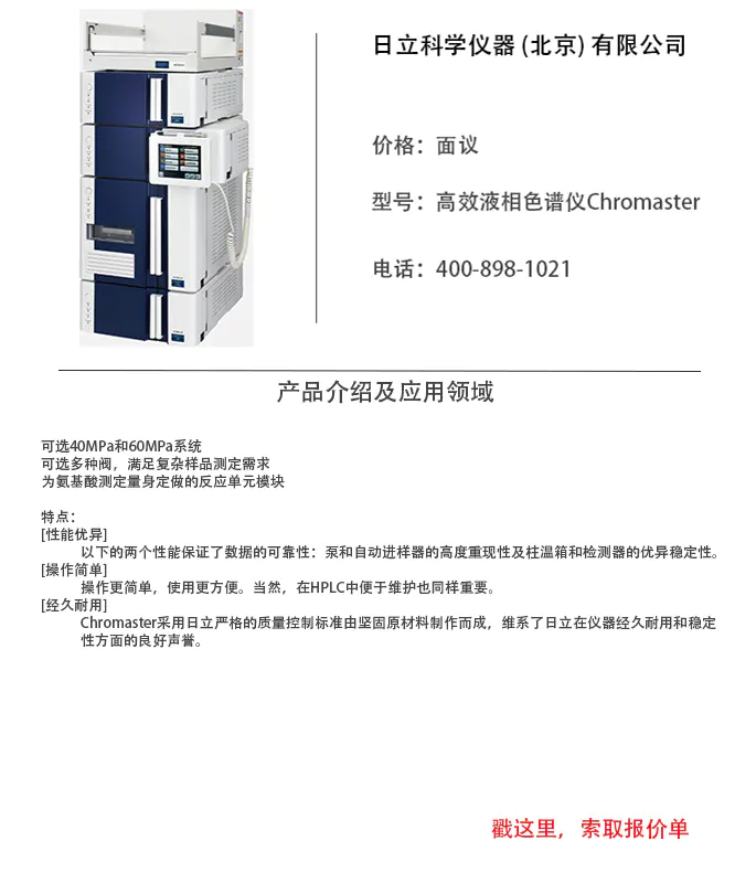 日立科学仪器(北京)有限公司是世界500强日立集团旗下日立高新技术有限公司在北京设立的全资子公司。本公司秉承日立集团的使命、价值观和愿景,始终追寻“以成为先端技术领域里提供高科技解决方案的全球第一为目标”的企业理念,通过与客户的协同创新,积极为教育、科研、工业等领域的客户需求提供专业和优质的解决方案。