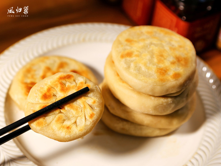 4. 电饼铛加热放油,油温放入包好的馅饼,馅饼表面刷上油。