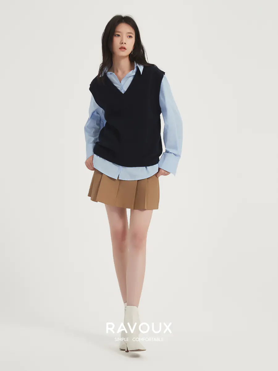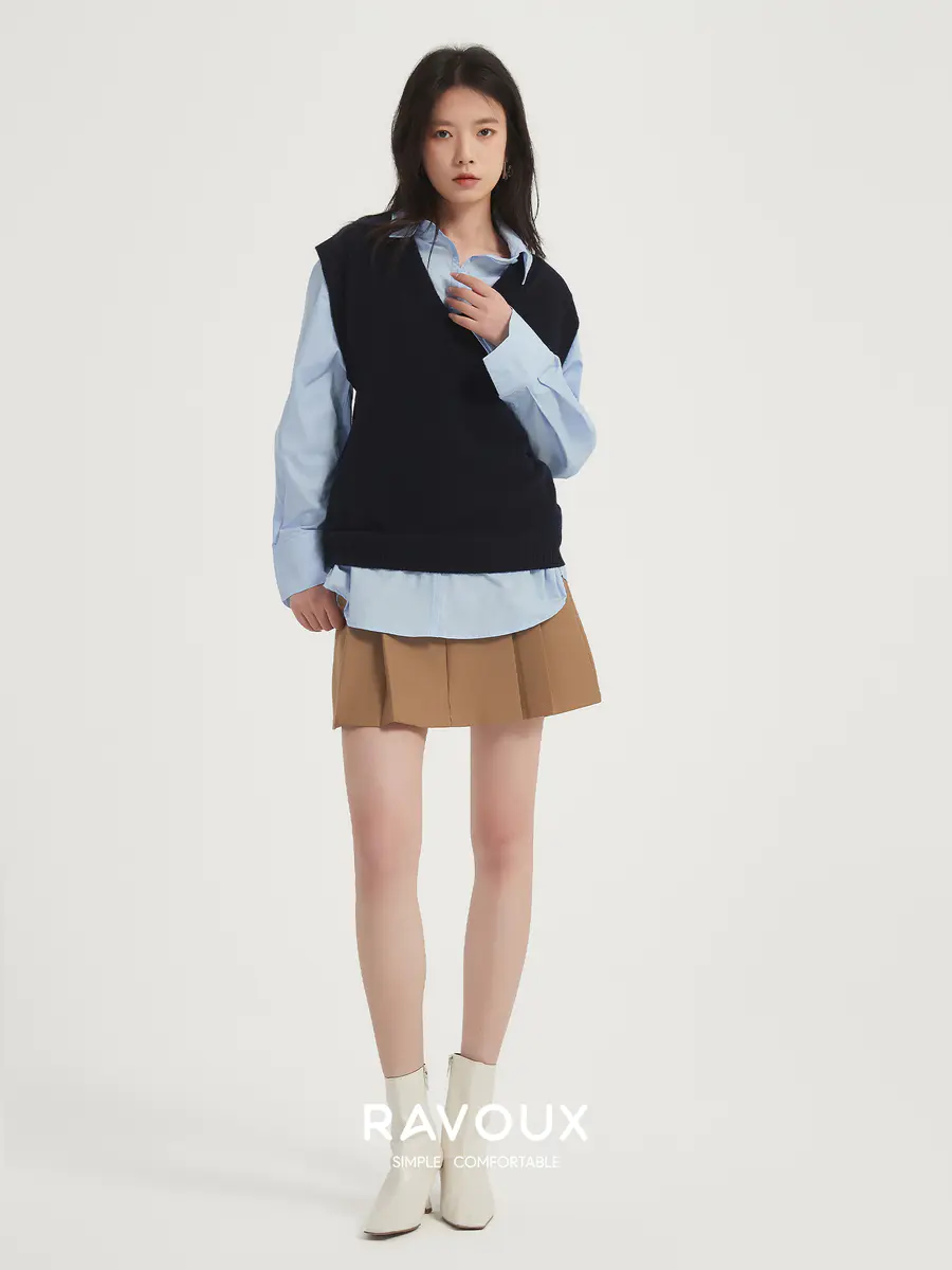 雾蓝+藏青绵羊毛马甲=早八知识分子叠穿模板