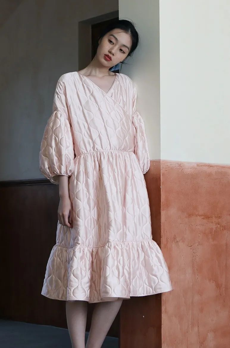 真丝面料光泽莹润如珍珠,海棠粉色温柔细腻,