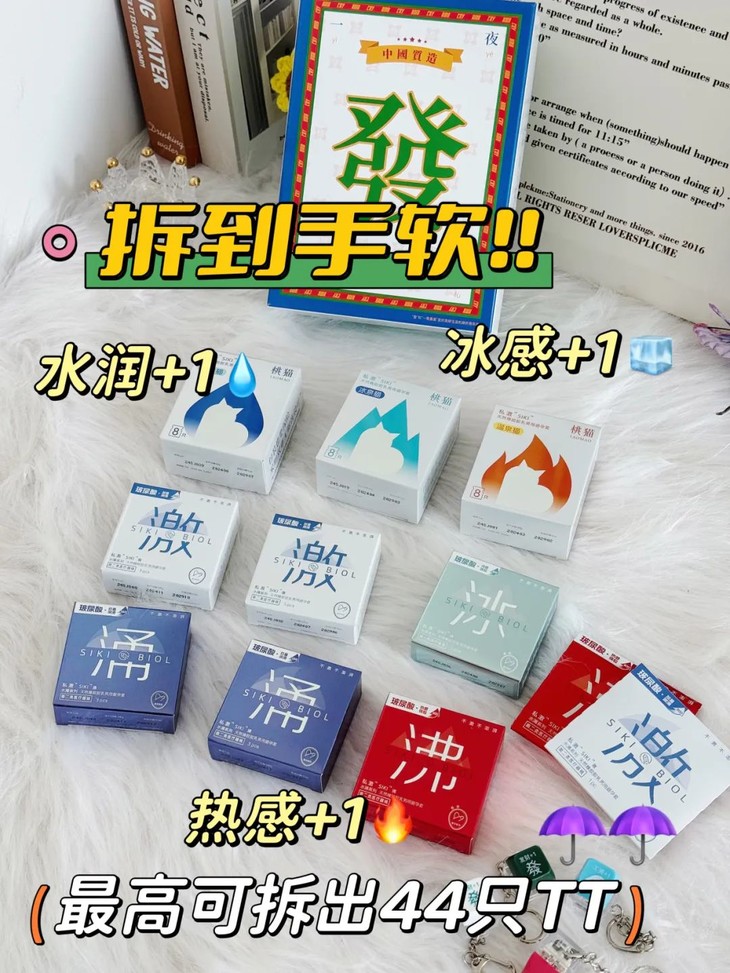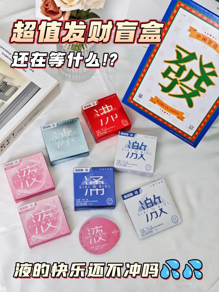 SIKI私激就很贴心!发财盲盒里的套套全部采用的是特调玻尿酸,真正做到比传统的润滑液更润滑,也更温和~