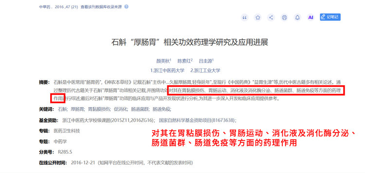 石斛“厚肠胃、抗氧化”相关功效药理学研究及应用进展