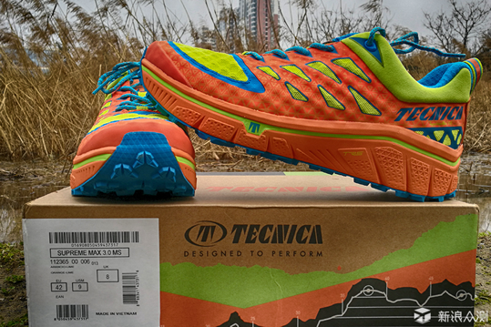 鞋盒的侧面标明了跑鞋产地和尺寸,笔者这双是越南产泰尼卡SUPREME MAX 3.0 至尊越野跑鞋,鞋码US 9码。