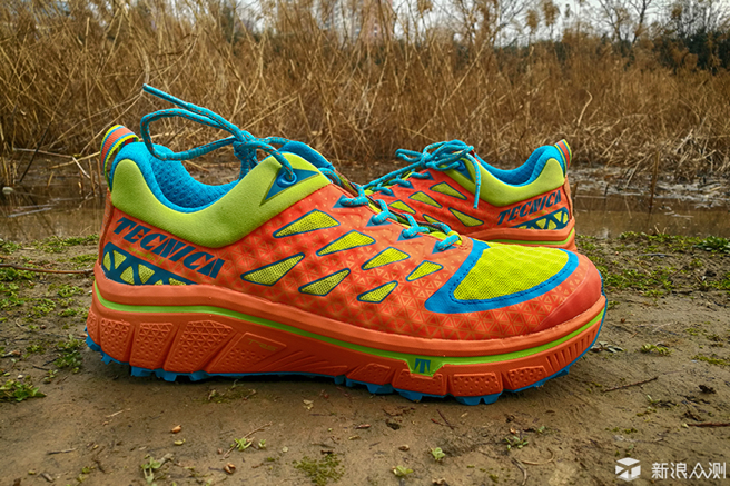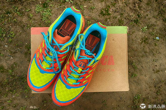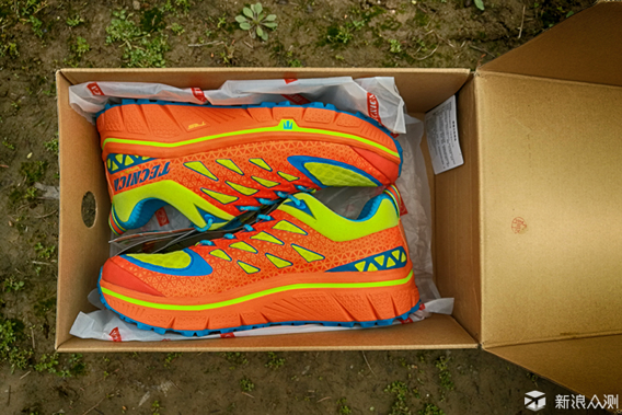 打开鞋盒,泰尼卡这款3.0 至尊越野跑鞋呈现在眼前,橙绿色的配色设计非常“骚气”,户外就是要靓!