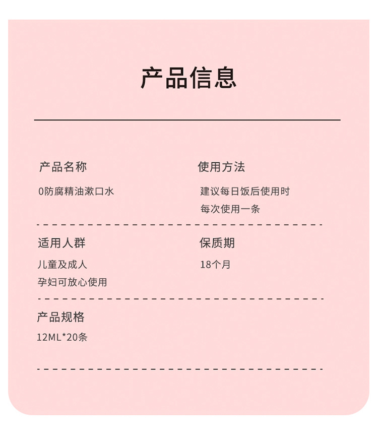 漱口水能够抑菌杀菌,冲刷到平时容易忽略或刷不到的口腔死角;同时能去除口腔异味,保持口腔清新