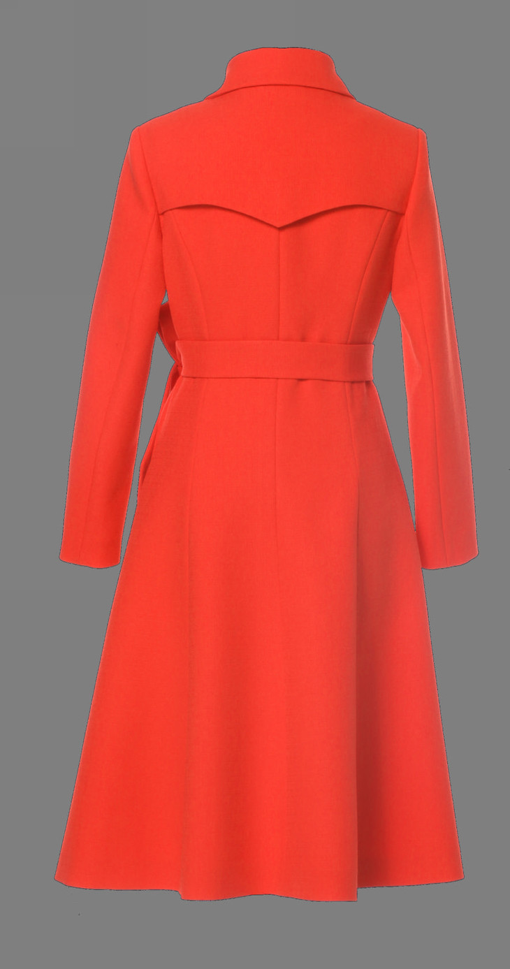 红色呢料外套叠穿连衣裙,又飒又美,清爽靓丽。