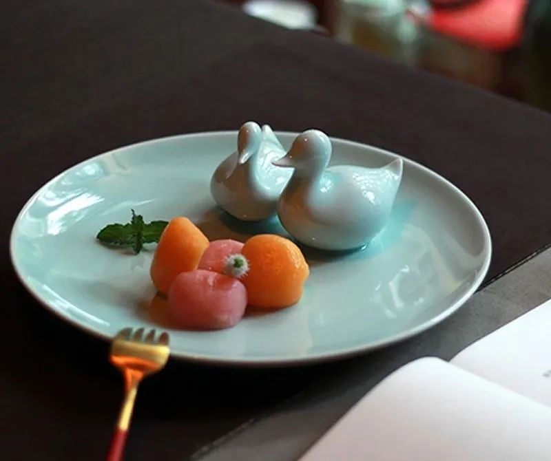 因为是纯手工制作,偶尔出现的黑色小点为陶瓷泥料和釉料内矿物元素在高温烧制后发色而成,属于正常现象。