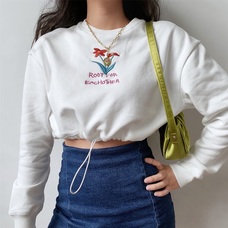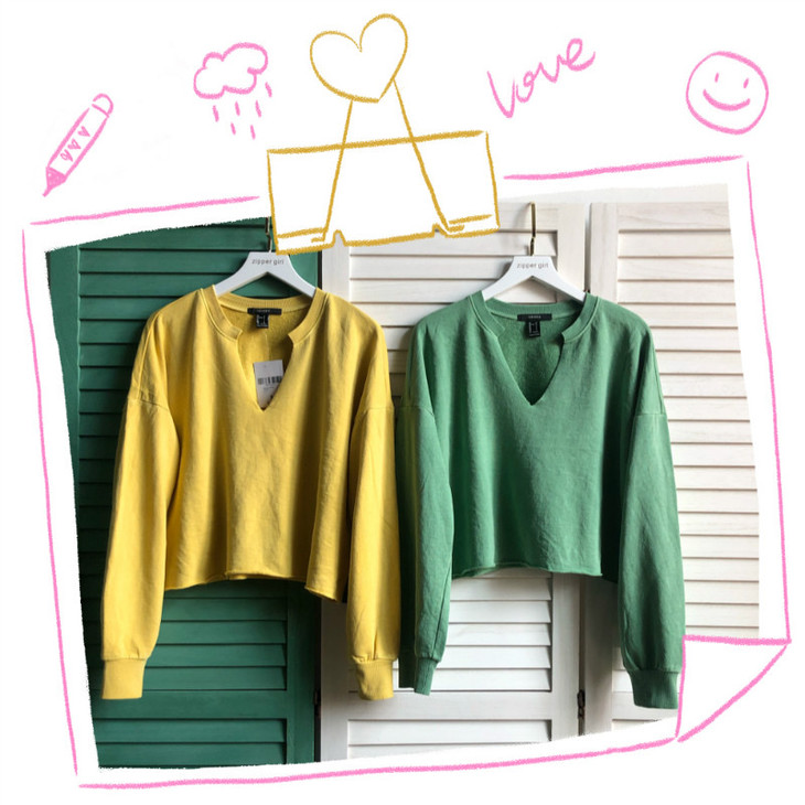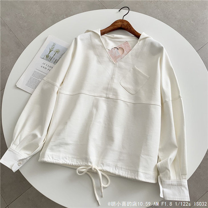 小领口卫衣视觉上加大了胸前的面积,凸显胸部曲线,有“膨胀”的感觉,更适合胸部不太丰满的姐妹。