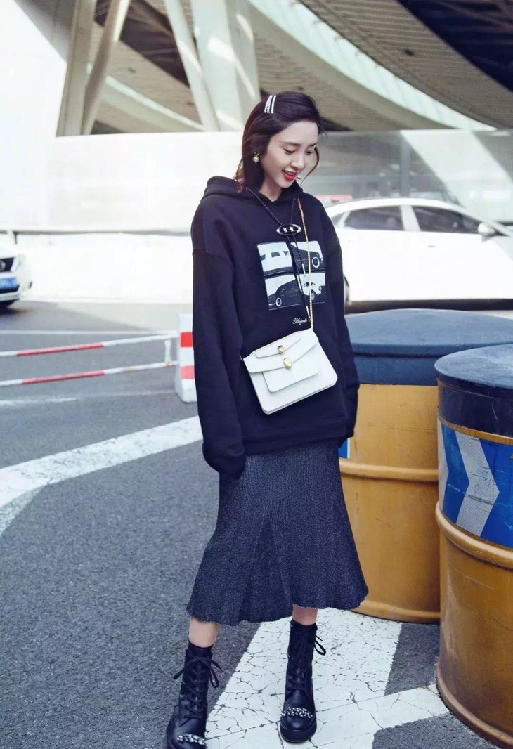 适合追求时髦、emmm而且不怕冷的girl,不过奶粉们还是要注意保暖别感冒,日常不怎么在外面的话可以用这种搭配。上身穿宽松卫衣,下半身选择短裤、短裙,适当露腿或者搭配过膝靴、中长袜、长靴等,露出细腿,也可以在整体上达到显瘦的效果。