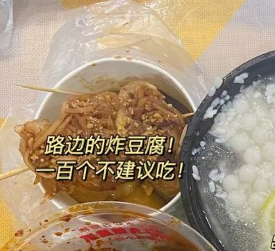 我买了个豆腐串、脆豆腐,一个都没有吞下去……
