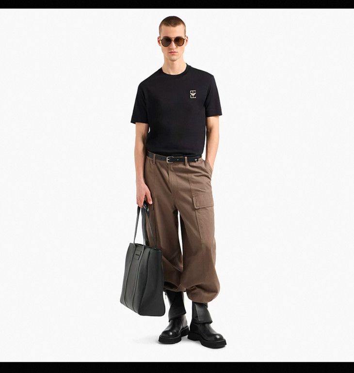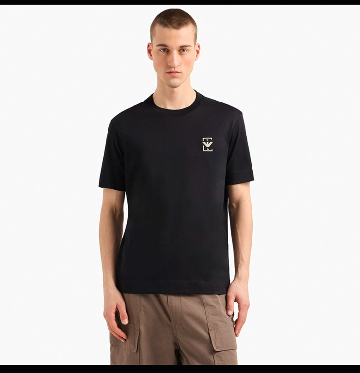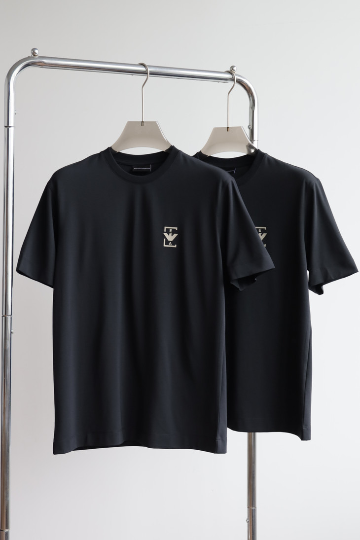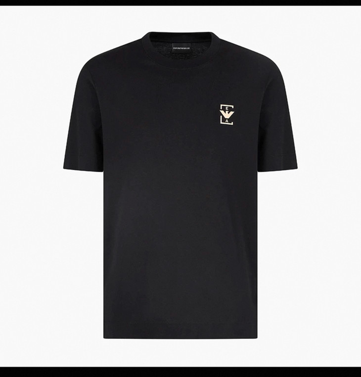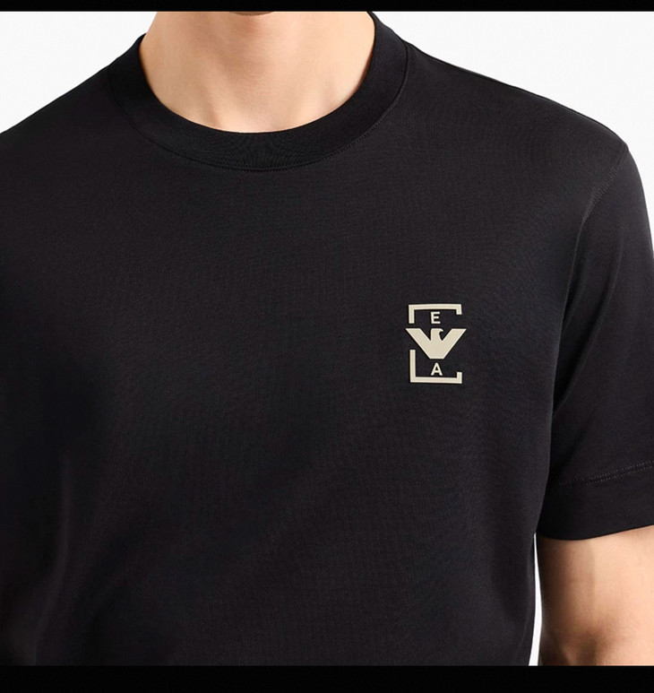 E@ 高克重 双丝光 立体小标 圆领T恤