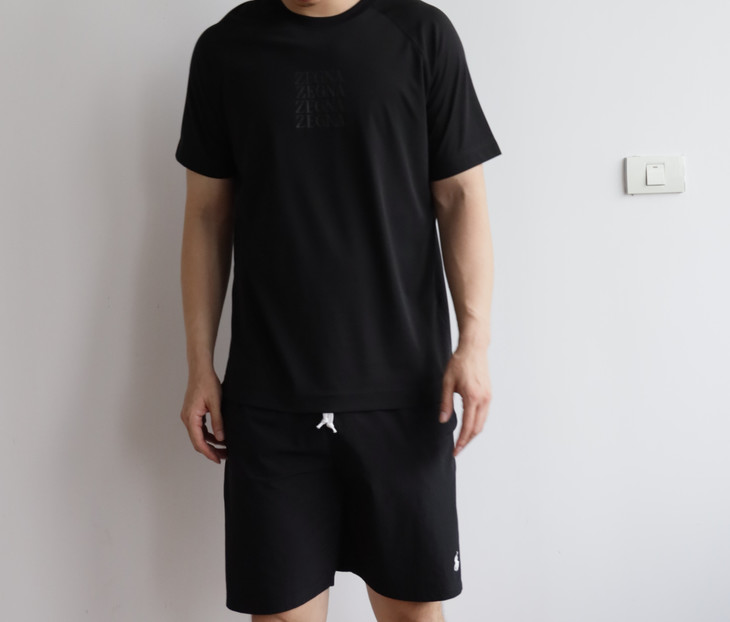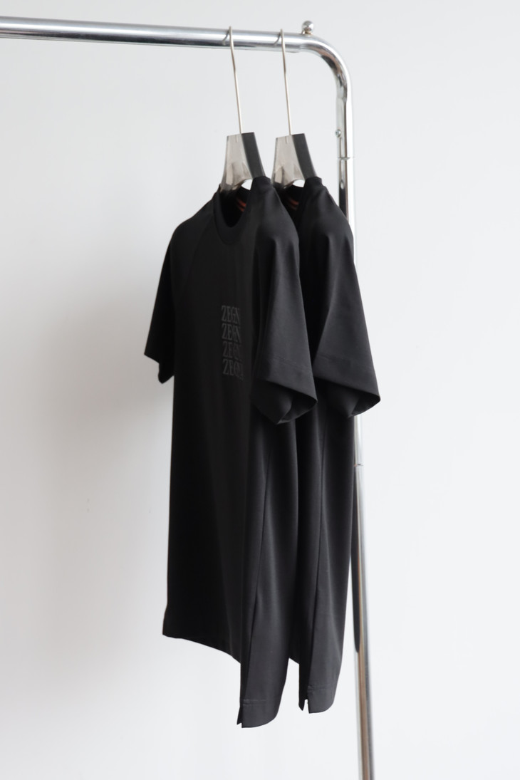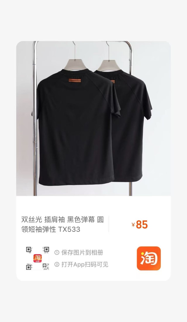 E.Z 双丝光 插肩袖 黑色弹幕 圆领短袖弹性