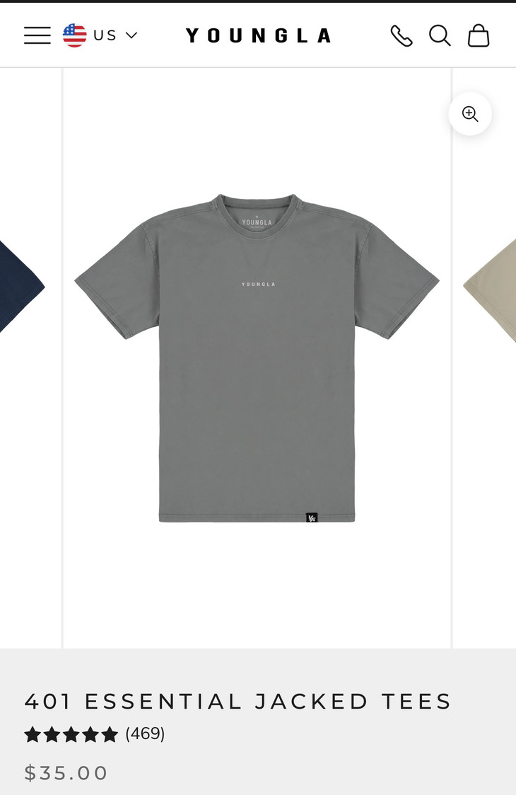 YoungL.A 元单 水洗 ESSENTIAL JACKED 圆领短袖T恤