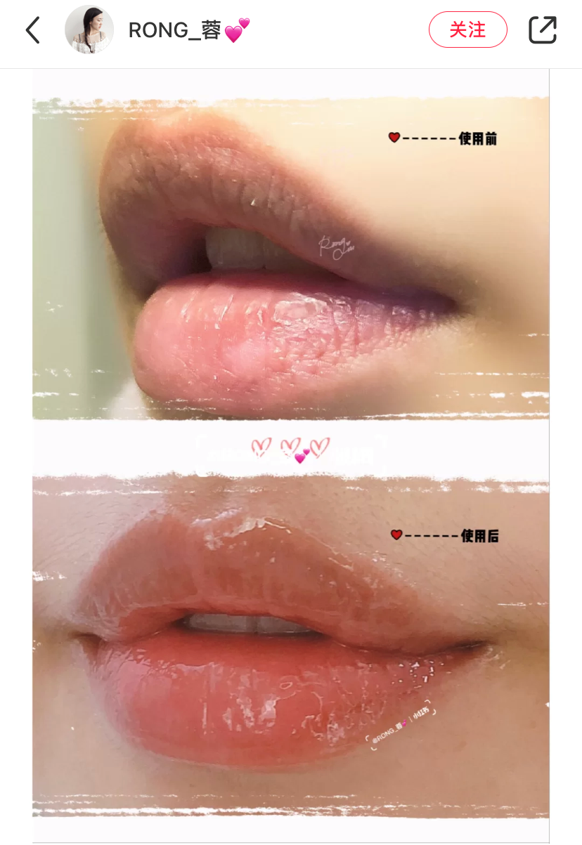 三种成分的保湿锁水能力都很强,能够入唇部补充水分,缓解干纹,让你的嘴巴一天都水嘟嘟~
